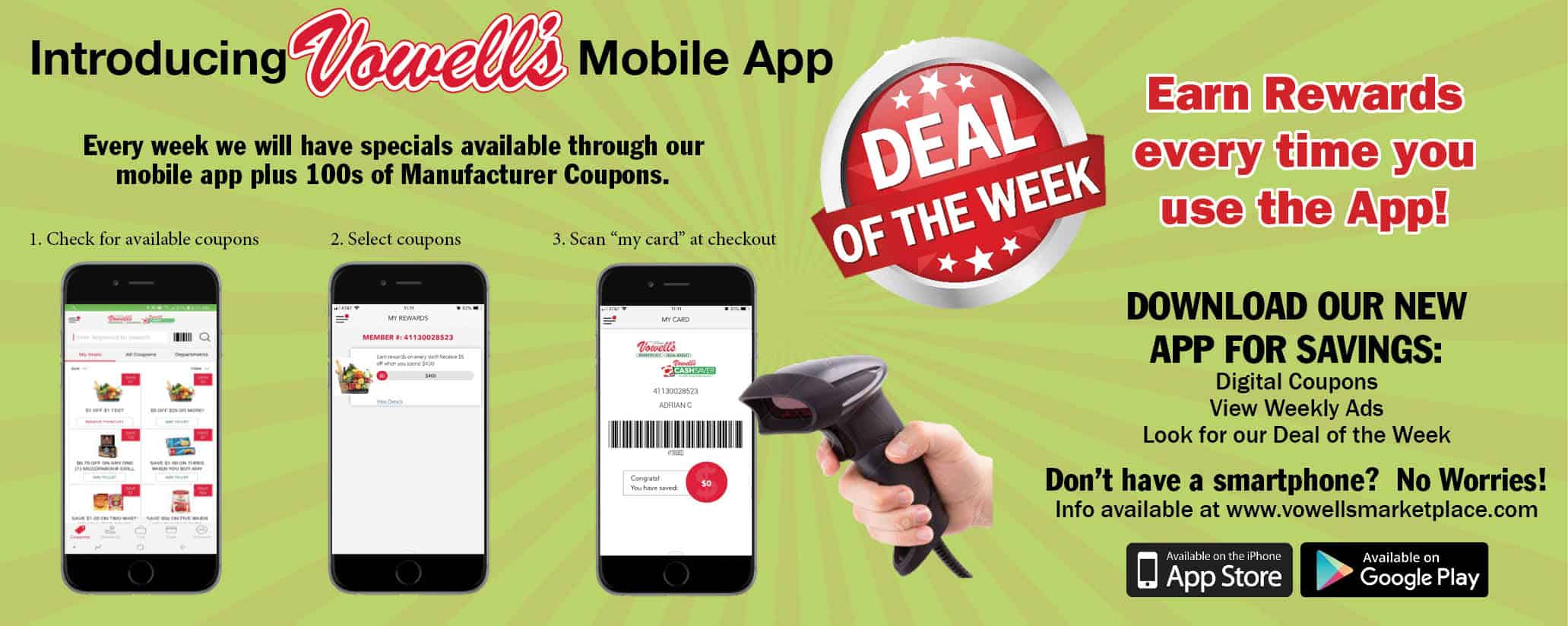 The Vowells Marketplace and Vowells Cashsaver Rewards app is the best way for our loyal shoppers to receive savings every time they come in to the store.